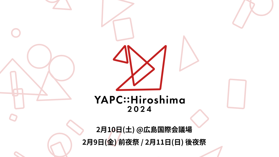 2024年2月10日(土) 広島国際会議場にて、YAPC::Hiroshima 2024 を開催します。 前後の日程でも、前夜祭後夜祭をします。
